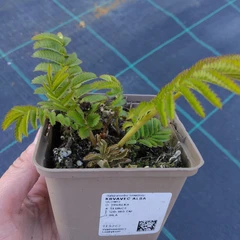 Sazenice zasazená v hranatém květináči o velikosti 9×9×9,5 cm.